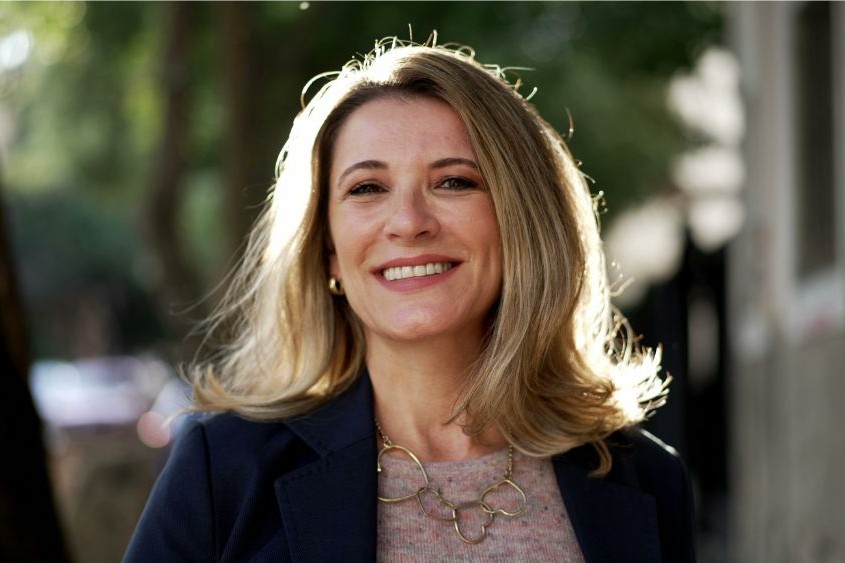 Smiling woman enjoying a drink comfortably, representing relief from tooth sensitivity after dental care